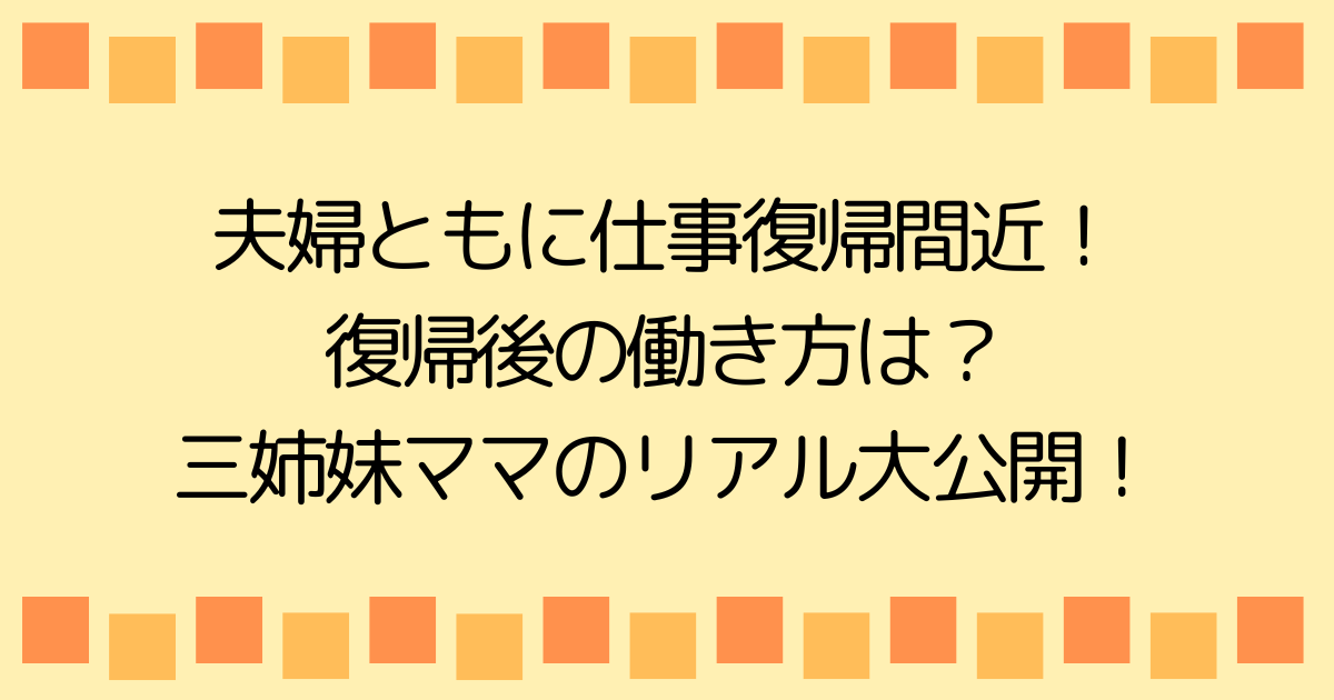 今日は、我が家の復帰後の働き方についてお話ししていきたいと思います。