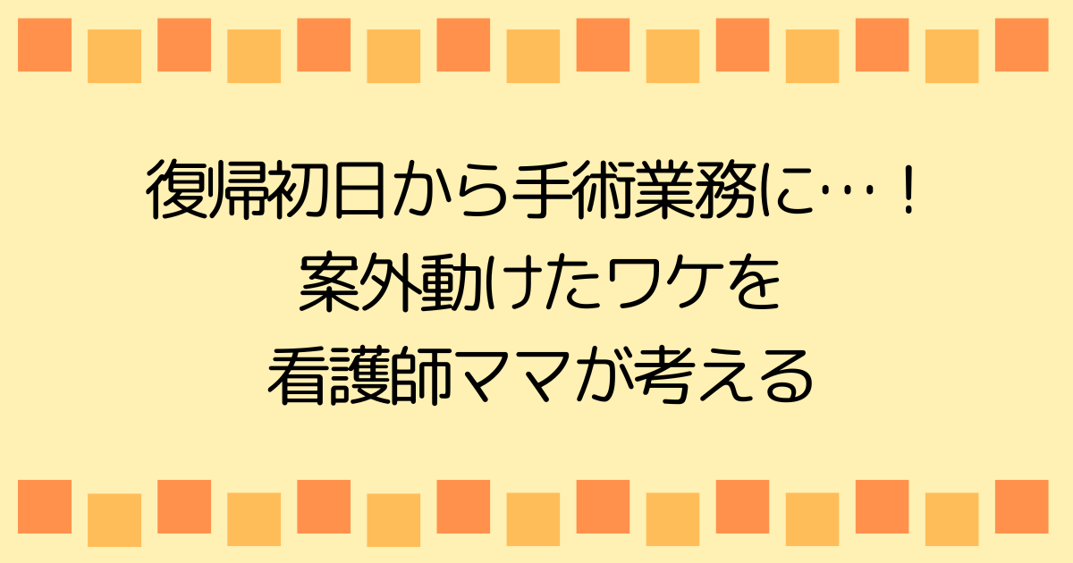 朝イチからのオペについていることで少なからず動揺しましたが、不思議と産休前のように動けた、その理由はなんなのか?
